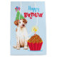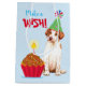 Happy birthday greetings with this design featuring a cute, party hat-wearing Pointer puppy with a birthday cupcake. “Happy Birthday” on front and “Make a Wish!” on the back. Text can be easily changed; just click on customise button.