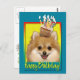 Celebrate a birthday with this whimsical Pomeranian Dog Greeting Card. With a cupcake balanced on it's head, this design is sure to bring a smile and giggles! BTW, This design has several versions, with different background colours. There is also an invitation to a Party version.