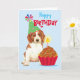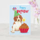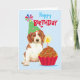 Happy birthday greetings with this cute design featuring a cute, party hat-wearing Welsh Springer Spaniel puppy with a birthday cupcake. Text can be easily changed; just click on customise button.
