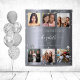 A gift from friends for a woman's 21st (or any age) birthday, celebrating her life with a collage of 6 of your high quality photos of her, her friends, family, interest or pets. Personalise and add her name, age 21 and your names. White text. A chic faux silver looking background. Her name is written with a modern hand lettered style script with swashes. Decorated with stars dripping.
