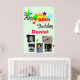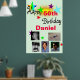 Customise and add your own photos to this colourful happy birthday poster to hang for a birthday party banner. Change text: name and year. Change out all placeholder photos for your own. Just select a photo and click "change image" to upload your own. Move them around with arrows until you like the arrangement. Use plenty of embarrassing old family photos for a great 40th or 50th birthday party conversation piece, or customise to any age birthday.
