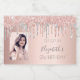 A sparkling wine label for a girly and glamourous 21st (or any age) birthday party. A rose gold background with rose gold and silver drips, paint dripping look. Personalise and add your own photo of the birthday girl. The text: The name is written in grey with a large modern hand lettered style script. Template for name, age 21 and a date.