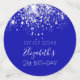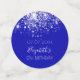 Celebrating a 21st (or any age) milestone birthday for a girl/woman. A royal blue background. Decorated with faux silver glitter dust. Personalise and add your own photo of the birthday girl. The photo template works best with a square photo. The text: The name in white with a modern hand lettered style script. Personalise and add a name, age 21 and a date. Some confetti chips with name and date, others with the text: Happy Birthday written with a trendy handlettered script with swashes. Add your own photo on two of the chips.