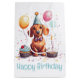 Cute illustration of Dachshund dogs dressed up for a birthday celebration. Perfect for pet lovers or dog parents!