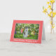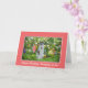 Fully customisable, you can easily change the text on the front of this birthday card for a daughter-in-law as well as the inside verse. A beautiful black white short haired cat with blue eyes sits among the colourful flowers. Bright pink gladiolus, purple irises, red tulips, and purple pansies are just some of the flowers in this garden. Customise by using the provided text templates.