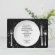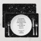 White dinner plate with silverware on on twinkling stars and black for any age birthday dinner party invite.