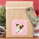 These girl's dog birthday party thank you stickers feature a whimsical illustrated Jack Russell Terrier prepared for some birthday party fun, wearing a pink, grey and white wavy striped birthday party hat with a tassel and blowing on a matching party horn - background is pale pink - customise thank you message, child's name and child's age on the dog's party hat - Jack Russell Terrier with Head Tilt design © katz_d_zynes 2019