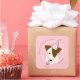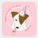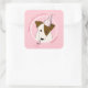 birthday dog puppy wearing party hat girls pink square sticker