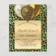 For an elegant 21st (or any age) birthday. An emerald green and gold leopard, cheetah pattern background. A golden frame and balloons. Personalise and add a name, age 21 and party details. The name is written with a hand lettered style script