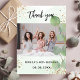 A birthday Thank You photo card. A waterecolored green background, decorated with a eucalyptus sprig. Personalise and add your photo and thank you note.
