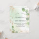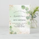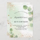 For an elegant 50th (or any age) birthday party. A golden watercolored background decorated with eucalyptus greenery and faux gold glitter dust. Personalise and a name and party details. Black and golden coloured letters.