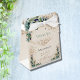 A white background decorated with eucalyptus greenery and golden leaves and faux gold glitter dust. Personalise and add a name and age. With the text: Thank You.