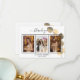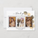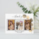 Add 3 of Your birthday photos, vertical size, a date, name, and the thank you note. A white background with black text and frame, a golden eucalyptus sprig. The text: Thank you on the front and your name on the back are written with a stylish hand lettered script with swashes.