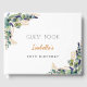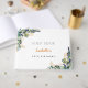 For an elegant and feminine 50th (or any age) birthday party. A chic white background. Decorated with green eucalyptus leaves, greenery and faux gold foliage. Personalise and a name and age. Black and golden letters. The name is written with a modern hand lettered style script.