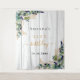 For a 21st (or any age) birthday party. Rustic white wood as background. Decorated with green watercolored eucalyptus leaves, sprigs, greenery and a faux gold leaves. Personalise and add a name, age 21 and a date. Black and golden letters. Can be used as a welcome banner, as party wall decoration or as a photo booth backdrop.
