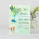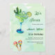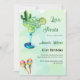 A green watercolored background decorated with watercolored cactus, a large green and blue glass with a Margerita coctail, colourful maracas Personalise and your name and details.