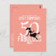 This design features a fifty and fabulous birthday invitation postcard, with modern budget 50th birthday party cute, an elegant chic glitter trendy stylish, 50 and fabulous fiftieth whimsical, elegant simple minimal minimalist, trendy cocktails drinks typography, cheers to 50 years, great for adult girly feminine women, milestone bash party celebration, making 50 look good, in orange peach colours