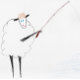 5x7 landscape greeting card – Fishing Ewe a Happy Birthday - A sheep with a fishing pole wearing a cute little bucket hat. It is clearly enjoying itself. Great for the person in your life who likes fishing, or sheep, or both! Original drawing is coloured pencil on paper, scanned in and placed on the card.
