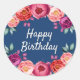 Birthday floral navy blue rose gold blush pink classic round sticker