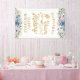 Personalised custom birthday banner sign for any age birthday for her featuring an editable retro script typography design for the number of YEARS IN THE MAKING for her age which incorporates her birth year within the design, floral bouquet borders in colours of blue, pink and white accented with greenery and gold leaves and your custom text. HELP: For assistance with design modification/personalisation, colour change, resizing, transferring the design to another product or if you would like coordinating items, contact the designer BEFORE ORDERING via Zazzle Chat or makeitaboutyoustore@gmail.com.