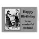Birthday for Reluctant but wonderful Husband Fun Vintage Photo with a woman holding a man at gunpoint. You'll celebrate your birthday or else!