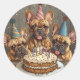 Birthday French Bulldogs Party Hats Classic Round Sticker