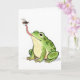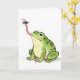 A green frog with large spots extends its tongue to catch a fly while sitting against a neutral background, showcasing a playful and lively artwork style reminiscent of Matsumoto Hoji.
