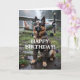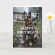 Birthday card featuring a photo of german shepherd dog wearing a leather jacket, goggles, and an aeroplane in the background. Inside are funny birthday wishes that say “ Don’t worry… he only chases tailwinds”. Perfect for a pilot or aviation enthusiast. Customise it with your own birthday wishes to make it extra special.