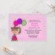 Cute Birthday Invitation with a young girl holding colourful balloons and wearing a party hat with the words Birthday Girl. The background and back of invitation has colourful confetti. Customise with your party details.