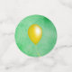 This table confetti has a big yellow sunflower with the face of a pretty girl in the center on shades of greens. Medium and small circles have festive party hats and yellow balloons. Customise your text with the template.