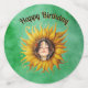 Birthday Girl Pretty Face in Sunflower Hats Green Confetti
