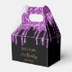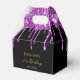Elegant, classic, glamourous and girly for a 21st (or any age) birthday party favours. A chic black background colour. On the front and the back: The text: 21st Birthday and Thank You written with a modern hand lettered style script. Decorated with deep purple faux glitter drips, paint dripping look. Personalise and add a name and a date. Golden coloured text.