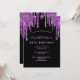 Birthday glitter dripping black purple modern chic invitation