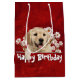 Birthday Golden Retriever On Red Leather Medium Gift Bag