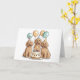Cute cartoon illustration of Goldendoodle dogs wearing a birthday hat surrounding a birthday cake and balloons. Perfect for pet lovers or dog parents.