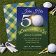 Celebrate a milestone in style with this elegant birthday golf-themed design—perfect for honoring memories with a fun, sophisticated design guests will love. Featuring a golf ball, banner and fun party font. Gold, blue and green plaid outline frames the golf themed design.