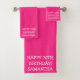 Happy 70th birthday! Funny 70th birthday hot pink bath towels. Perfect for mum, daughter, stepmom, friend. Gift idea for her. Personalise it with a name.