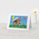 This merry meeting of an elephant, a giraffe, and a bunny rabbit along with a yellow balloon and the moon makes a birthday greeting card with the quality of childlike innocence and wonder.