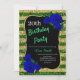 Birthday Green Gold Stripes Glitter Deep Blue Rose Invitation