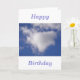 Heartshaped cloud in blue sky with blue text: "Happy Birthday"