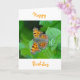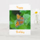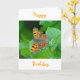 Cute ange butterfly sitting on green leaves, orange Text: "Happy Birthday"