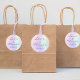 A holographic background in pink, purple and mint green. Decorated with faux sparkles. Personalise and add your name. With the text: Love & Thanks. Perfect for birthday party favours.