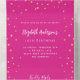 A hot pink background, faux gold stars. Personalise and add a name, party details, RSVP date. The name is written with a hand lettered style script
