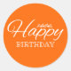 Birthday in neon orange classic round sticker