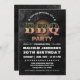 Birthday Invitations | BBQ Party. BBQ Birthday party invitations. Grill with vintage decorative text, black chalkboard grunge background.
