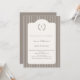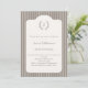 The subtle vertical taupe stripes frame a beautifully shaped ivory panel, creating a balanced and upscale look. At the top, a delicate laurel wreath surrounds a personalized monogram, adding a bespoke touch that makes this invitation feel truly custom. The combination of modern minimalism and traditional elegance makes it perfect for milestone birthdays such as a 40th, 50th, 60th, or beyond.