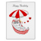 Cute Birthday kitten in red and white hammock. Text can be personalised.