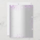 A faux silver looking background with violet faux glitter, sparkles, lavender florals, flowers and eucalyptus greenery. Personalise and add your name and the party details.