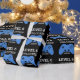 Birthday Level Up Gamer Video Game Personalised Wrapping Paper. Blue video game controller on black background. Kids video game birthday party wrapping paper. Add age and name to personalised. Level up birthday party supplies. www.SamAnnDesigns.com