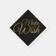 Birthday Make a Wish Black & Gold Napkin has gold lettering on a black background.